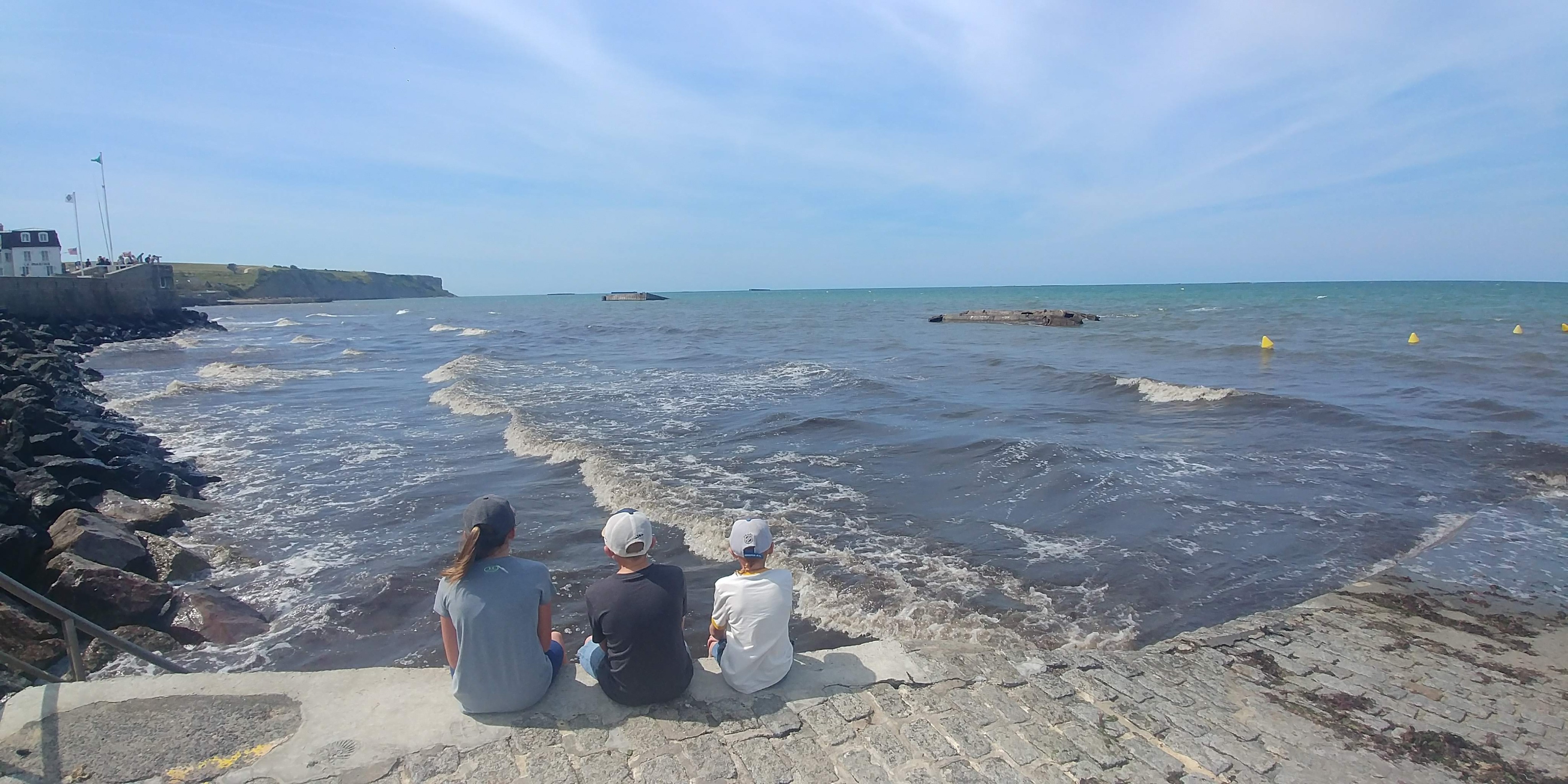Dinner was our first moules-frites of the trip, then an evening stop at the Pointe de Hoc cliffs. So many bunkers, old gunner positions and bomb craters. The kids loved exploring it all and we loved the cliff top views.